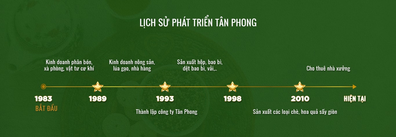 Trải qua biết bao thăng trầm của lịch sử, nền nông nghiệp Việt Nam vẫn còn nghèo nàn, lạc hậu, công nghệ sản xuất thô sơ khiến chúng ta bị thụt lùi so với các nước láng giềng. Ý thức được tình trạng trên, Tân Phong ra đời chọn lĩnh vực sản xuất và thương mại nông sản để phát triển, với mong muốn vực dậy nền nông nghiệp Việt Nam.